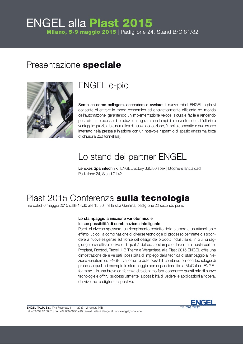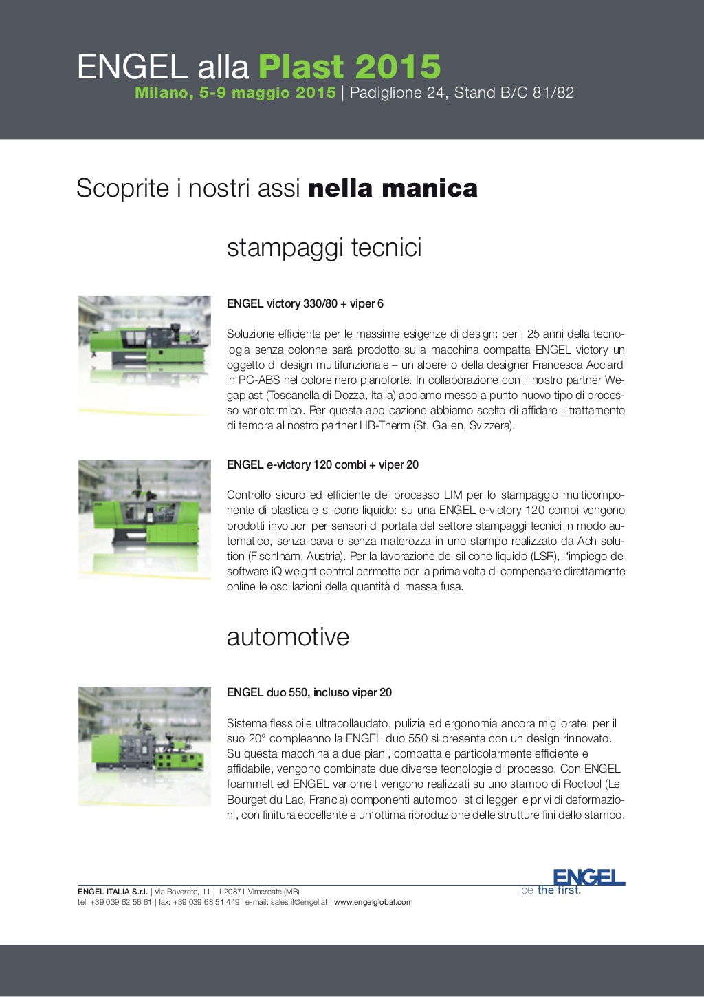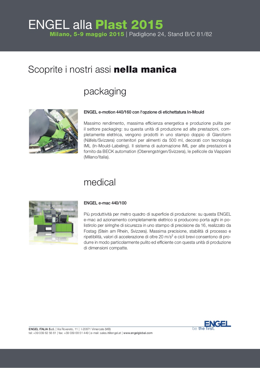 Anche Engel parteciperà alla fiera Plast 2015