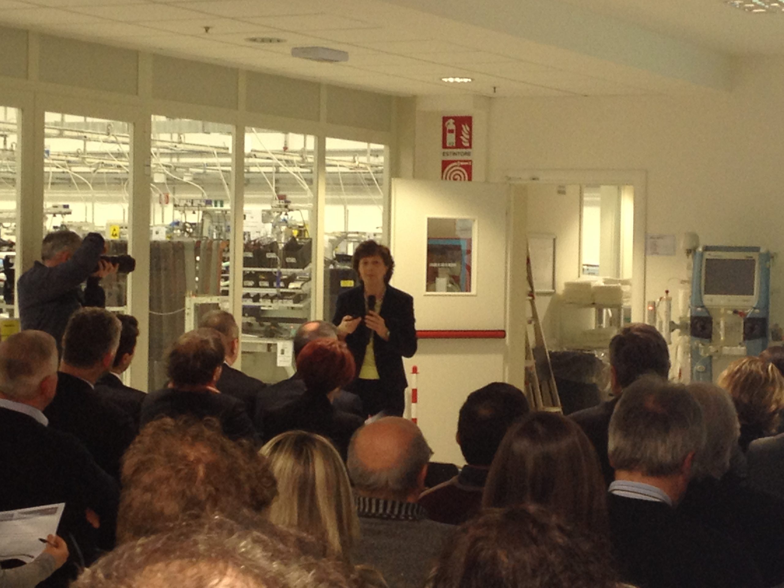 Un secondo intervento all’insegna della prevenzione quello di Elena Mancini Direttore Unità Nefro Sant’Orsola Malpighi «prevenire lo sviluppo di Malattia Renale Cronica è fondamentale, innanzitutto è bene controllare la pressione arteriosa, fare gli esami del sangue per misurare la creatinina, indice della funzione renale ed eseguire l’esame delle urine e nel caso in cui l’albumina abbia valori sballati fatevi vedere da un nefrologo». La Dott.ssa Mancini ha inoltre esposto i dati e la storia sulla cura delle disfunzioni renali «il costo della dialisi è di circa 50.000 Euro/l’anno per paziente, ogni anno sono circa 1.250 milioni di € spesi per la dialisi e per i pazienti la dialisi è comunque una catena che li tiene imprigionati, per questo abbiamo bisogno di progresso tecnologico, ecco il ruolo delle industrie come questa che hanno permesso negli anni di migliorare la condizione dei pazienti sotto dialisi, per quanto sia possibile parlare di miglioramento in una malattia che rende il paziente così vincolato, in questo stabilimento si sono scritte pagine di storia della Medicina a partire dal primo filtro dializzatore, passando per le terapie e fino ad arrivare ad oggi»