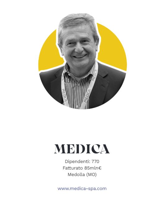 Nata nel 1985 nel distretto biomedicale di Mirandola, Medica è oggi una realtà internazionale con presenza diretta in oltre 10 Paesi, un export che vale l’80% del fatturato e una rete commerciale attiva in più di 70 mercati 🎯