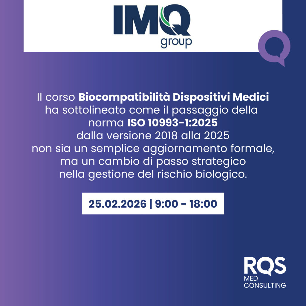 Il panorama regolatorio dei dispositivi medici non si ferma mai. Proprio questa settimana RQS Med Consulting è stata ospite di CSI S.p.A. a Bollate (MI) per un’immersione tecnica sulla nuova edizione della ISO 10993-1:2025 organizzata da IMQ.