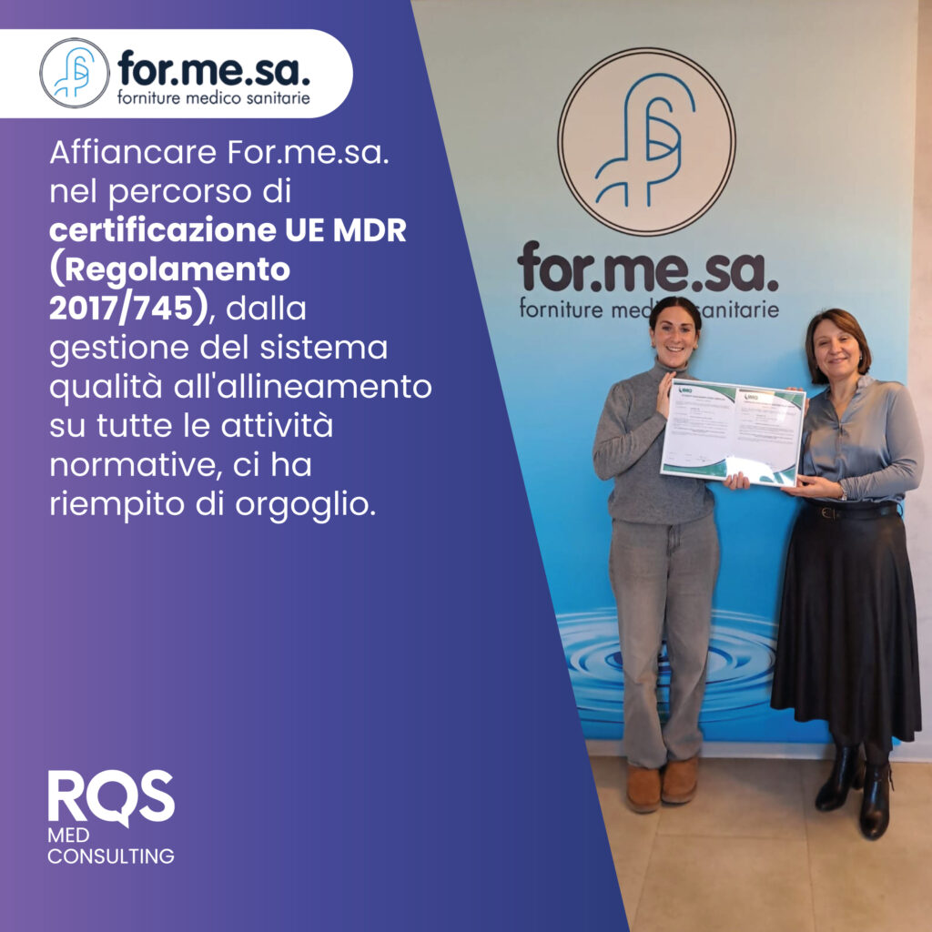 RQS Med Consulting celebra un momento importante insieme a Formesa, ovvero l’ottenimento della certificazione UE MDR (Regolamento 2017/745) per il pessario, dispositivo medico dell’azienda.