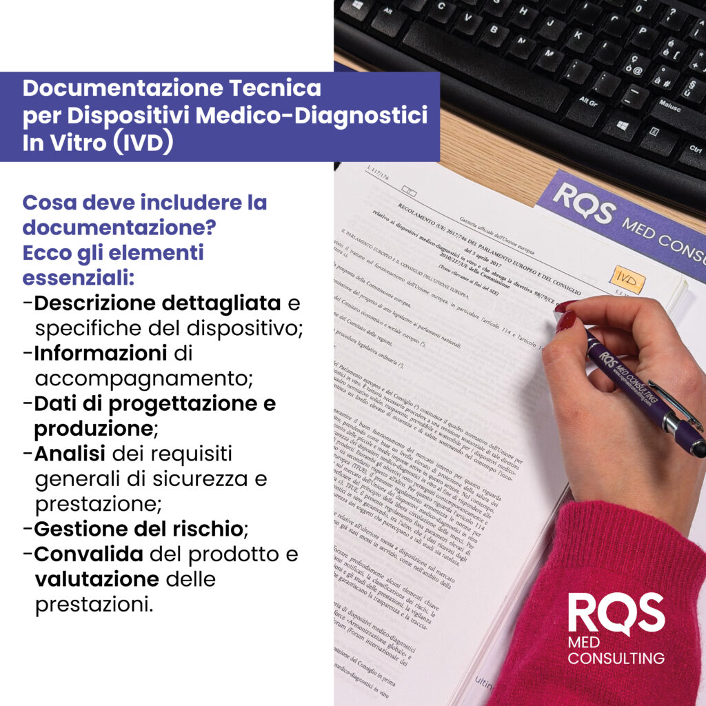 RQS Med Consulting può supportare la tua azienda nella redazione della documentazione tecnica per dispositivi IVD, garantendo la piena conformità ai requisiti generali di prestazioni e sicurezza previsti dal Regolamento 2017/746.