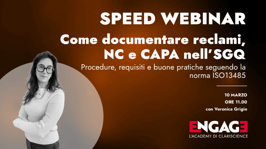 Webinar gratuito Clariscience: documentare reclami, NC e CAPA nel SGQ per dispositivi medici