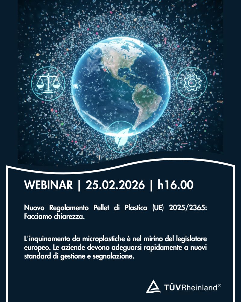 Il webinar di TÜV Rheinland, che si terrà mercoledì 25 febbraio alle ore 16:00, propone una visione approfondita sul nuovo quadro normativo europeo volto a contrastare l’inquinamento da microplastiche. Verranno analizzati in dettaglio i principali requisiti di conformità, con l’obiettivo di rispettare gli obblighi legislativi e di promuovere lo sviluppo del business. Saranno trattati in modo specifico il piano di gestione dei rischi, le migliori pratiche operative e tutte le misure utili a limitare la dispersione di microplastiche. Particolare attenzione sarà inoltre dedicata agli aspetti (eco)tossicologici, gestionali e organizzativi evidenziati dal legislatore nel Regolamento (UE) 2025/2365.